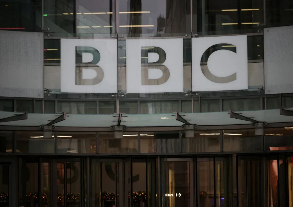 FILE PHOTO: BBC logo outside the BBC Broadcasting House, in London, Britain, December 16, 2025. REUTERS/Isabel Infantes/File Photo
