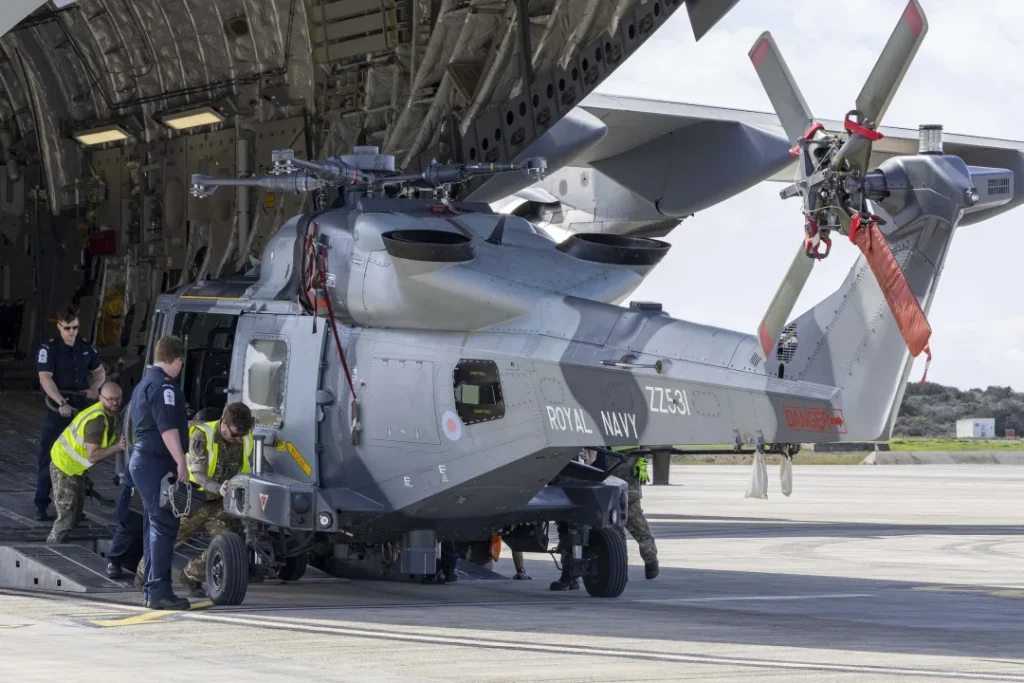 Акротири, Кипр. Два британских вертолета AW159 Wildcat, оснащенных средствами борьбы с беспилотниками, прибыли на военно-воздушные силы Великобритании в Акротири в пятницу для усиления обороны острова после удара беспилотника иранского производства, нанесенного ранее на этой неделе.