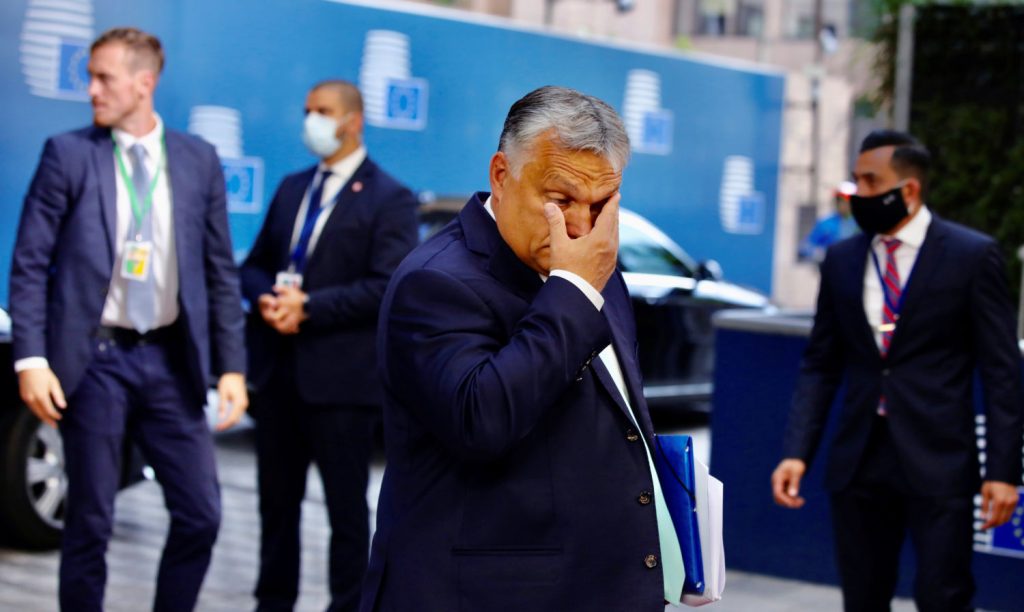 Венгрия, поддерживаемая своим евроскептиком, националистическим союзником Польшей, пригрозила наложить вето на весь пакет по новому предусмотренному механизму, чтобы заморозить страны, попирающие демократию.