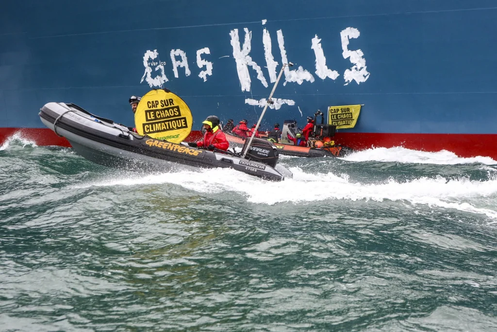 Протест начался в среду: активисты использовали каяки, спасательные плоты и парусное судно, чтобы перекрыть вход в терминал. Организация заявила, что акция призвана обратить внимание на то, что ЕС продолжает закупать российский газ, несмотря на агрессию Москвы в Украине.