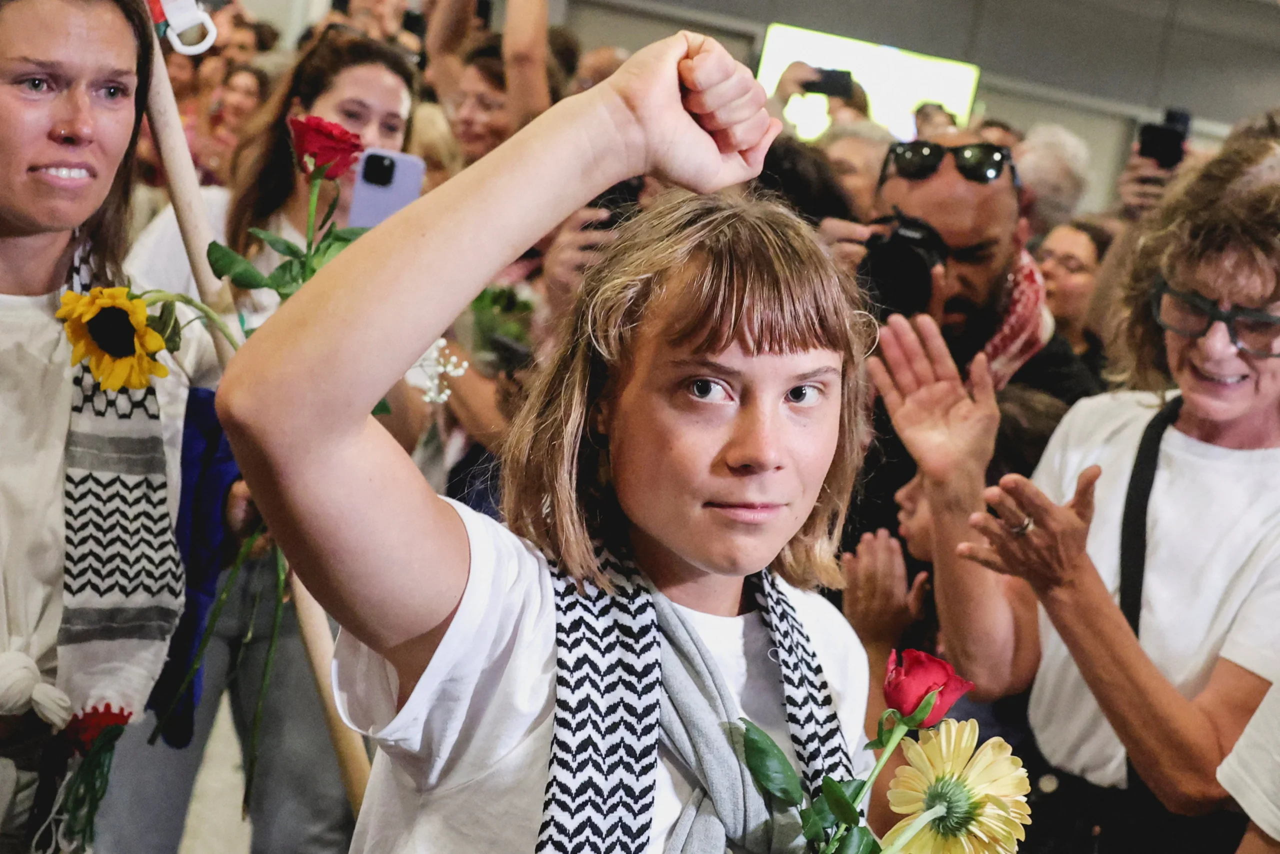 Она добавила, что международные институты «предают палестинцев» и не способны предотвратить военные преступления. По словам Тунберг, цель Глобальной флотилии Sumud заключалась во вмешательстве там, где правительства не исполнили своих юридических обязательств.