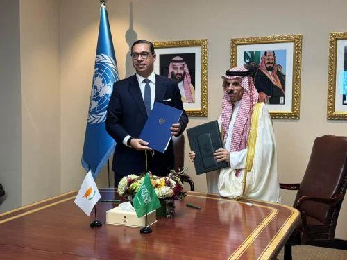 Нью-Йорк, США. Министр иностранных дел Кипра Константинос Комбос и глава МИД Саудовской Аравии принц Фейсал бен Фархан Аль Сауд подписали меморандум о сотрудничестве, направленный на укрепление двусторонних отношений и развитие взаимодействия в стратегически важных областях.