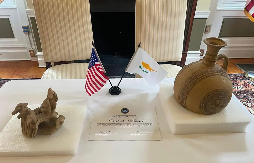 В декабре прошлого года заместитель министра культуры Василики Кассианиду посетила Лос-Анджелес для возвращения ещё 266 кипрских предметов старины, которые были незаконно вывезены за последние десятилетия, отметив тогда, что “в последнее время наблюдается растущая тенденция возвращения предметов старины”.
