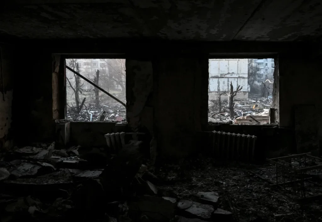 Residential buildings damaged by Russian military strikes, amid Russia's attack on Ukraine