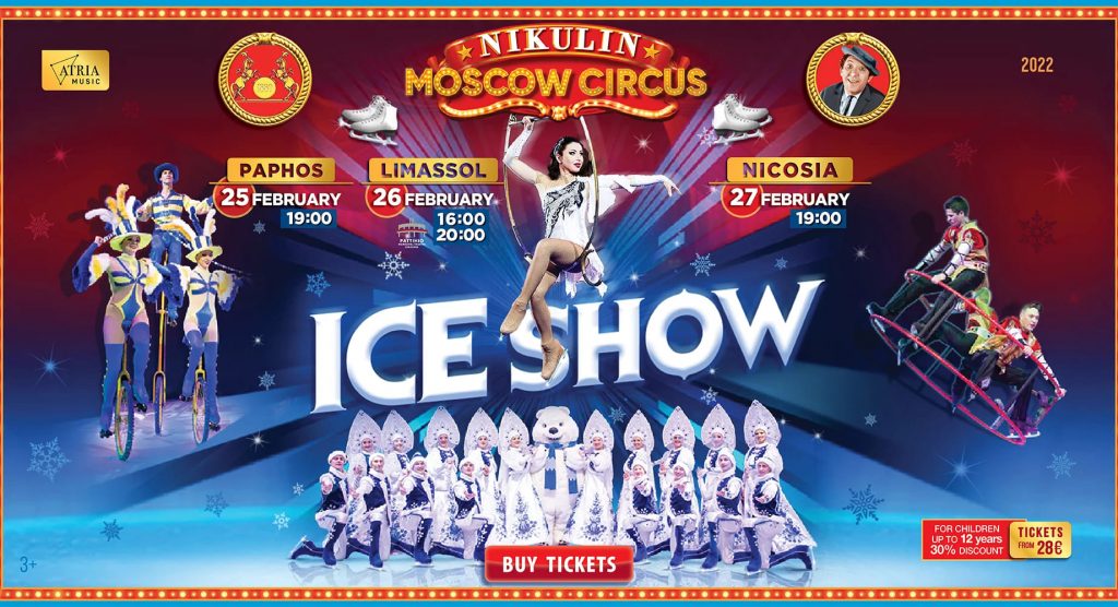 Знаменитый Московский цирк Никулина представляет «Грандиозное ледовое шоу» для взрослых и детей впервые на Кипре – после многочисленных гастролей в США, Италии, Германии, Израиле, Нидерландах, ЮАР, Бразилии, Объединенных Арабских Эмиратах, Франции, России, Польше, Бельгии, Китае, Канаде, Японии , и многих других странах.