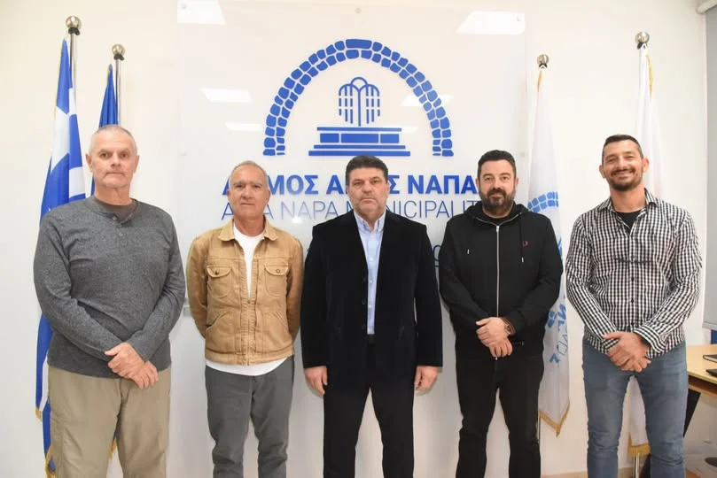Мэр Айя-Напы Кристос Заннетту и его заместитель Антонис Кристу провели встречу с группой морских биологов — доктором Альбаро Израэлем, доктором Карлосом Хименесом, Василисом Андреу и Антонисом Петру.