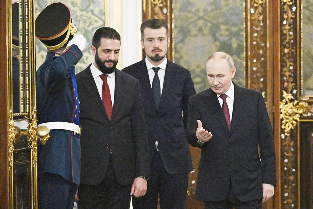 Москва, Россия. Президент Сирии Ахмед аш-Шараа заявил в среду на встрече с президентом России Владимиром Путиным, что его страна будет соблюдать все ранее заключённые соглашения с Москвой, подтвердив безопасность двух ключевых российских военных баз — в Хмеймиме и в Тартусе.
