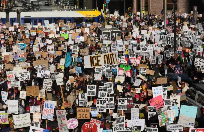 Миннеаполис, США. В пятницу тысячи демонстрантов прошли маршем в Миннесоте и по всей территории Соединенных Штатов, требуя немедленной высылки федеральных иммиграционных агентов из штата после серии инцидентов со смертельным исходом. Эти акции были частью акции протеста ”Национальный шатдаун”.