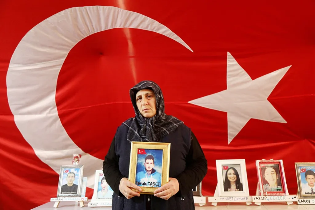A woman holds a picture of her son who is believed to have joined the outlawed Kurdistan Workers' Party (PKK) during a protest against the main pro-Kurdish party, accusing it of helping the PKK recruit her children, in Diyarbakir, Turkey
