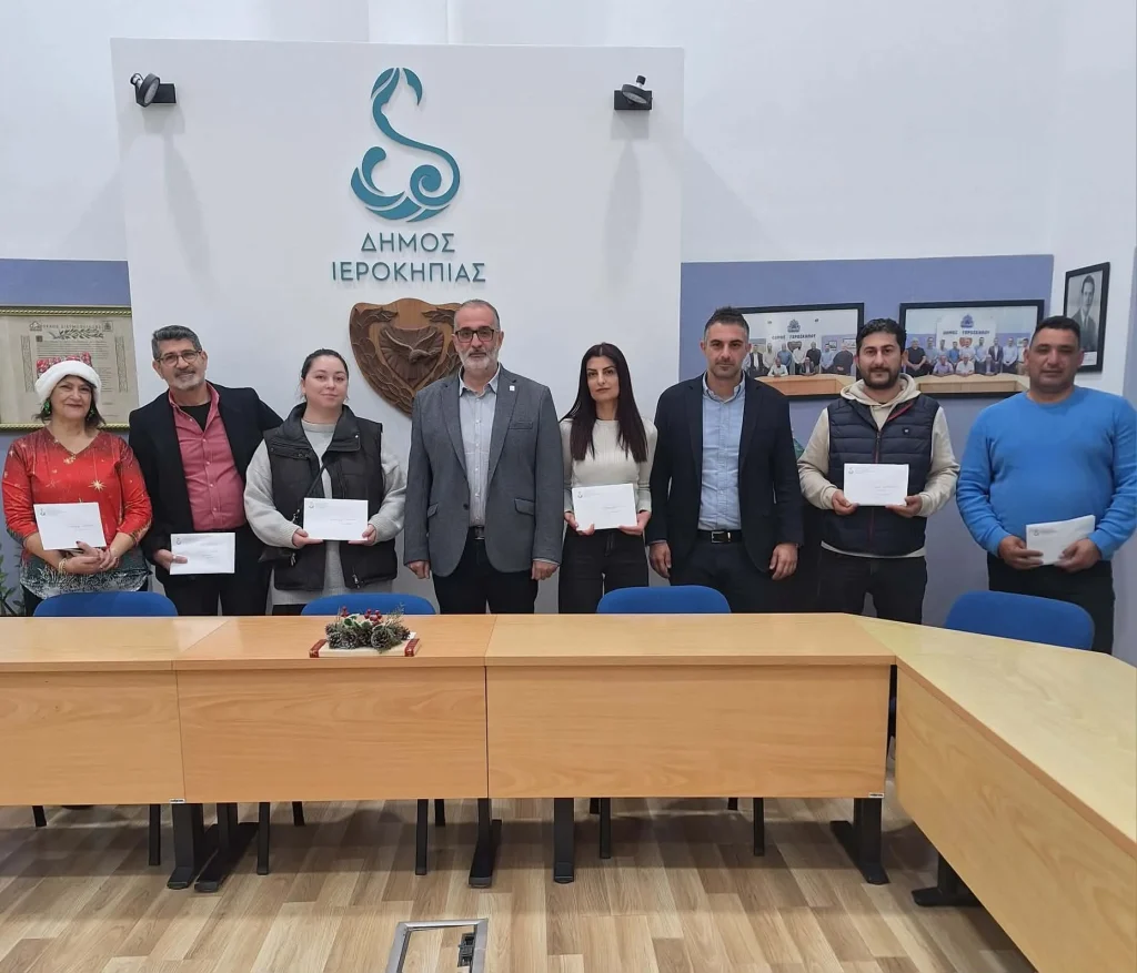 Ваучеры были вручены 22 декабря в муниципальном здании Иерокипии мэром Никосом Палиосом и председателем Комитета социального обеспечения Йоргосом Леонидасом директорам и представителям школ.