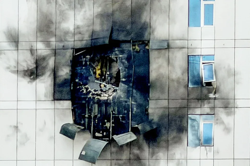 A building that was damaged by an Iranian drone attack, in Manama, Bahrain