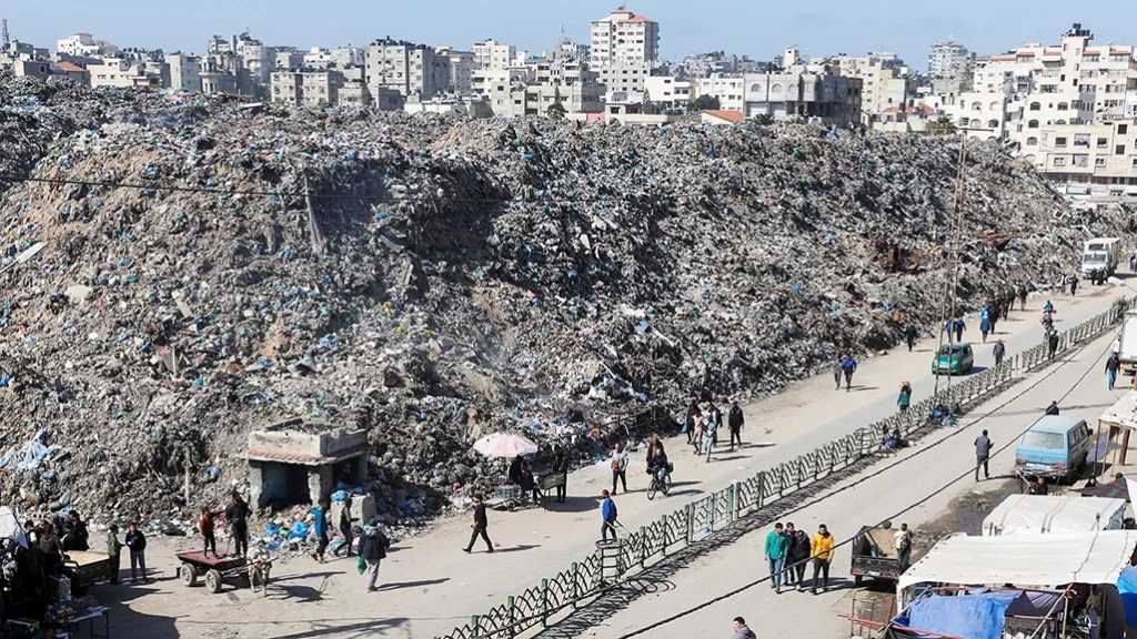 Mrakic said the mound formed after municipal crews were blocked from reaching Gaza’s main landfill in the Juhr al-Dik area adjacent to the border with Israel when the Gaza war began in October 2023. The Juhr al-Dik area is now under full Israeli control.
