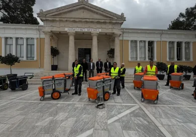 Paphos, Cyprus. Alexandros Jiang, a Cypriot with Chinese heritage, has donated 14 cleaning handcarts to the Paphos municipality to support…