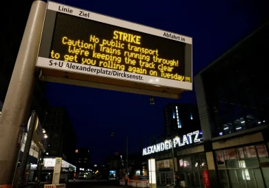 Берлин, Германия. В понедельник десятки тысяч работников общественного транспорта объявили забастовку по всей Германии, в результате чего пассажиры оказались на…