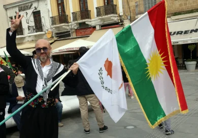 Никосия, Кипр. Члены курдской общины Кипра прошли маршем по центру Никосии в четверг, когда парламент готовился к голосованию по резолюции,…