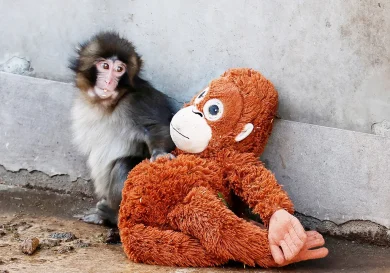Итикава, Япония. Детеныш японской макаки по кличке Панч из зоопарка города Итикава стал популярной достопримечательностью после того, как подружился с…