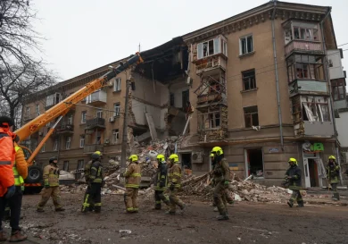 Харьков, Украина.Российские беспилотники и ракеты нанесли удар по второму по величине городу Украины поздно вечером в понедельник, отключив электричество в…