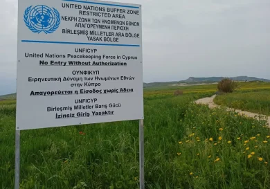 Никосия, Кипр. Были установлены новые знаки для демаркации буферной зоны вблизи деревни Дения в рамках усилий ВСООНК по усилению мер…