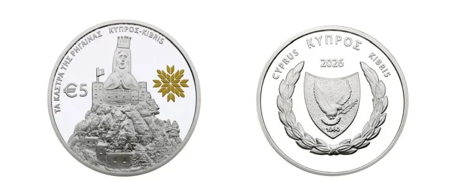 Central Bank of Cyprus выпускает серебряную коллекционную монету €5 «замки Ригайны» к председательству в Совете ЕС в 2026 году