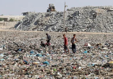 Хан-Юнис, Газа. Среди руин разрушенного анклава жители Газы сталкиваются с новой угрозой — тоннами гниющего мусора и сточных вод, которые…