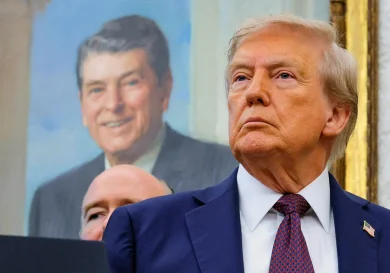 Вашингтон, США. С февраля в Овальном кабинете над рабочим столом Дональда Трампа висит улыбающийся портрет Рональда Рейгана — дань уважения…