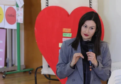 Никосия, Кипр. Министр сельского хозяйства Мария Панайоту во время посещения средней школы Лация рассказала школьникам о том, что Европейское зеленое…